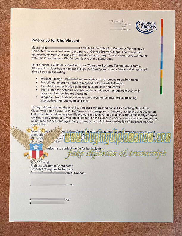 Buy a George Brown College Admission Letter, buy George Brown College Fake Degree, the Best site to order the George Brown College Diploma. Make the George Brown College Fake Transcript. Buy an Admission Letter. The college offers more than 150 full-time courses and 1,600 Vocational re-education courses. Courses cater to the needs of the job market with a wide range of options. Course types include Distance education, apprenticeship courses, and one-year certificate diploma courses. Two-year diploma program, three-year advanced diploma program T. Postgraduate Diploma, four-year Honors Bachelor Degree.